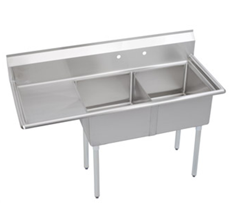 63" 2 Compartment Sinks with 20" x 20" Bowls & Right Drainboard