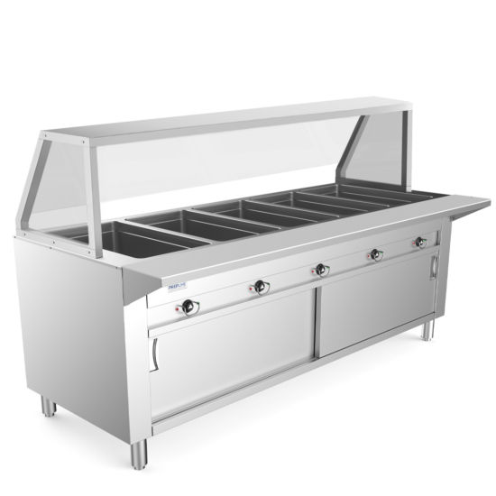 74" Five Well Electric Hot Food Steam Table with Lighted Sneeze Guard and Enclos